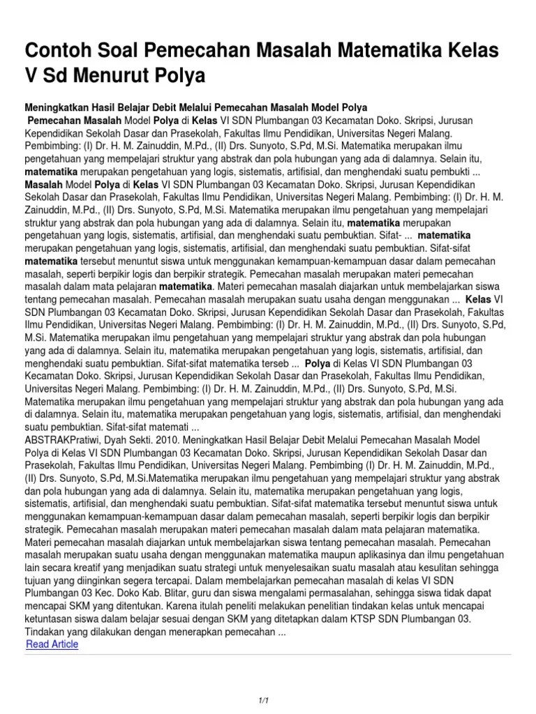 Berikut beberapa contoh soal ksn bidang matematika sd yang saya dapatkan dari internet. Perbandingan uang ani dan budi adalah 5 : Rpp matematika sd kelas 3. Kemampuan pemecahan masalah matematis siswa memiliki peranan penting. Kelompok 5 indah rohmalinda (06111013033) nirmalasari (06111013040) merry widyanti (06111013041) desy aryanti (06111013042) 3.